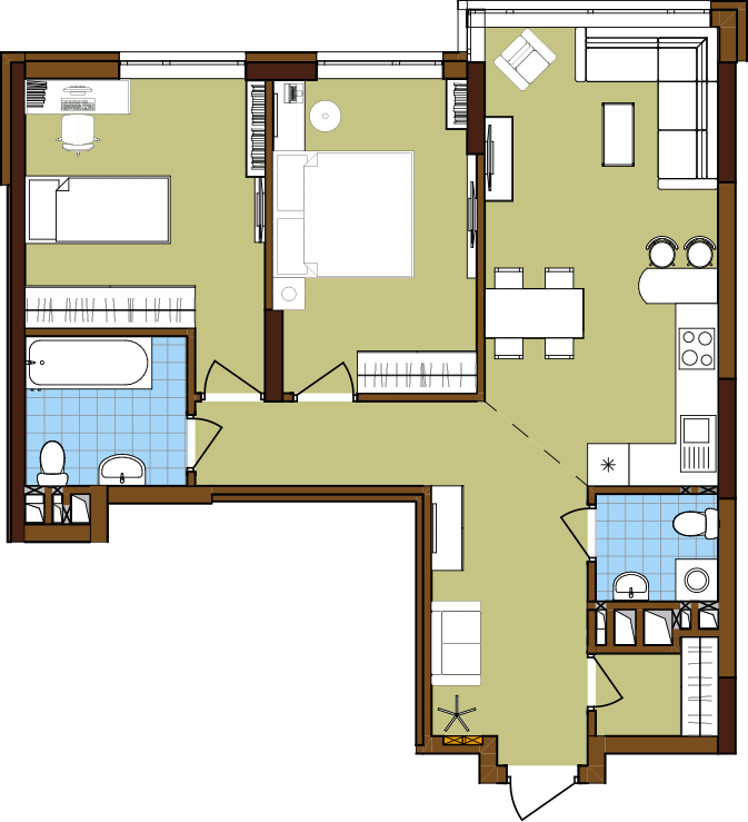 ЖК Варшавскький 3 - квартира №2С1 -кімнатна